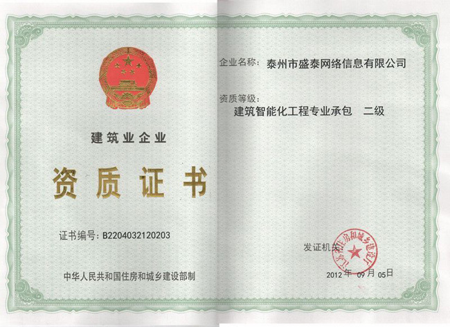 熱烈祝賀公司建筑智能化專業(yè)承包資質(二級)申請并獲得通過